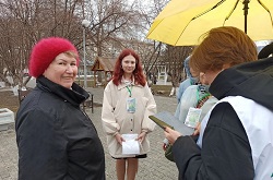 Волонтеры Добро.Центра вышли на улицы Катайска, чтобы рассказать прохожим о Всероссийском голосовании по отбору объекта для благоустройства в родном городе.
