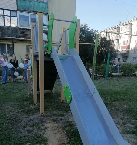 И еще одно замечательное событие произошло у ТОС «Содружество»: детская площадка пополнилась еще одним элементом благоустройства - горкой.