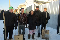 В декаду милосердия группа лиц, проживающих в Психоневрологическом интернате, под руководством инструктора по труду Важениной Надежды Тихоновны помогли в уборке снега ветерану Великой Отечественной войны Истомину Г.С.