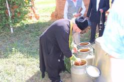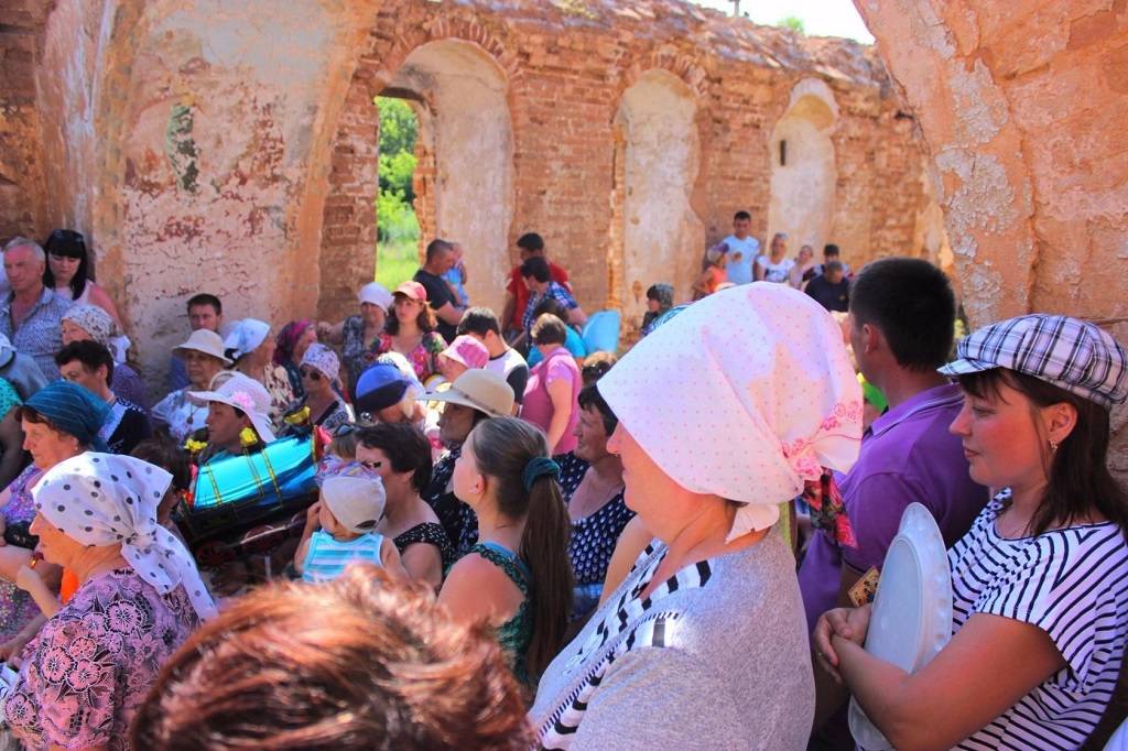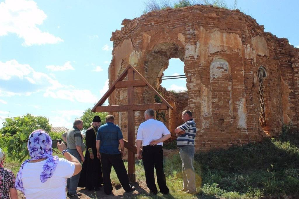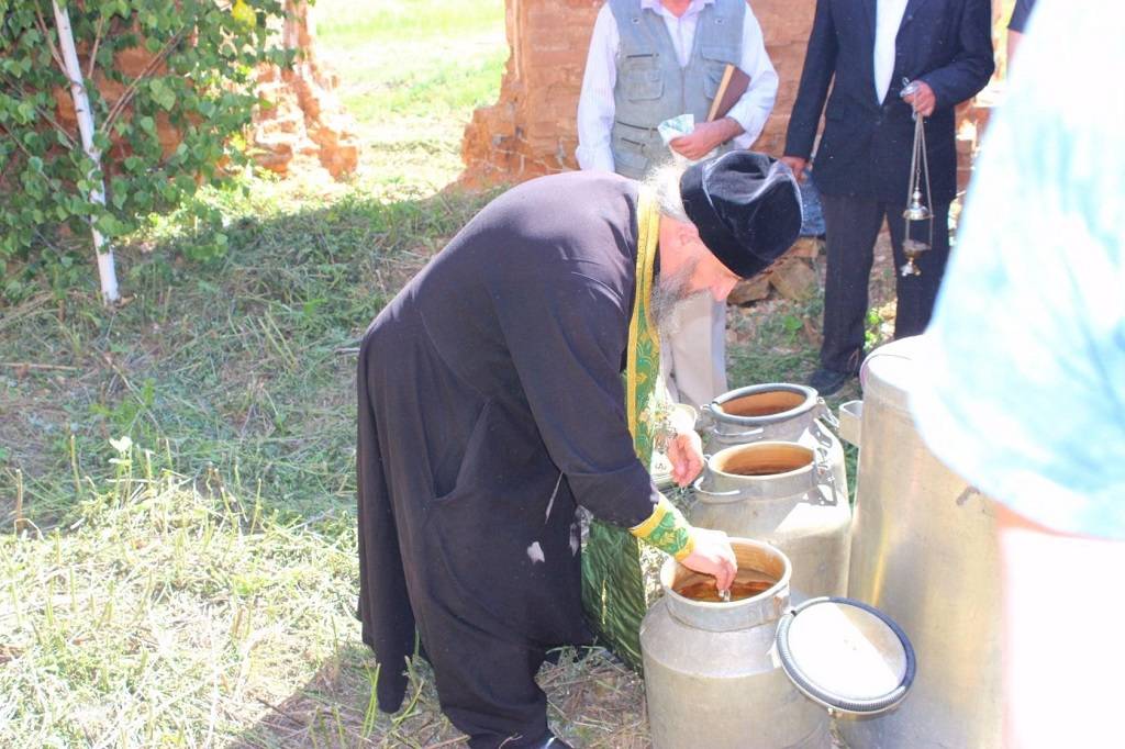 В 14 часов состоялась церемония освящения отцом Александром (Тимушевым) поклонного креста на месте церкви, установленного накануне, и освящение воды.
