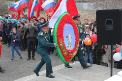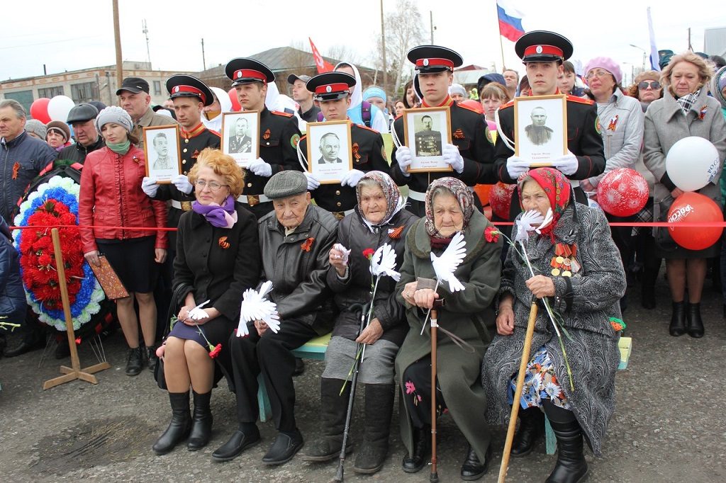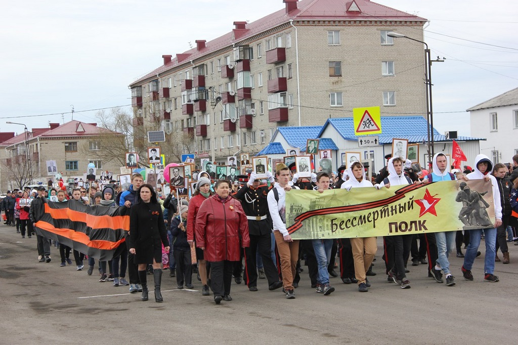 Знаменная группа и кадеты агропромышленного техникума под флагами красной армии и российскими флагами, «Российское движение школьников», ряды «Бессмертного полка» и празднично украшенная колонна трудовых коллективов проследовали в парк Победы, где состоялся митинг и открытие памятного знака ветеранам боевых действий в локальных воинах и военных конфликтах.