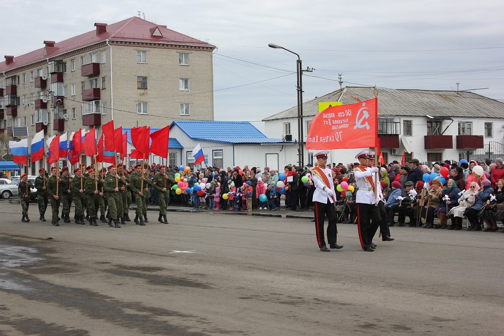 9 мая на центральной площади поселка состоялся праздничный парад, посвященный 73-годовщине Победы в Великой Отечественной войне, который был открыт музыкальной композицией в исполнении кадетов агропромышленного техникума и детей с множеством ярких шаров, флажков и обручей.