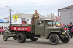 Праздничное шествие возглавил советский грузовой автомобиль «ЗИС-5» с минометом.