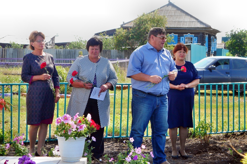 На торжественный митинг по случаю открытия памятника собрались жители и гости села. Право открыть памятник было предоставлено Главе сельсовета Богомаз Татьяне Викторовне и Председателю ветеранского первичного отделения Хуторского сельсовета Третьяковой Любови Дмитриевне.