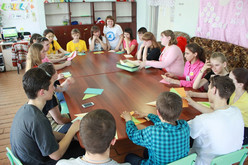 Что нового было на слете? Например, темой стали профессии, а если быть точными, то отряды назывались «Дети бюджетников», «Дети сельхозработников» и т.п. Мастер-классы стали творческими мастерскими, но суть осталась та же – научиться чему-то новому, стать одной командой. С лиговцами Ольгой Коротковой и Мариной Кикоть слетовцы выучили танец. Психологическую мастерскую провела психолог ДДТ Е.А. Сафронова. Помогала изготавливать конверты в стиле оригами педагог ДДТ П.Н. Яхнич. Как правильно дышать, произносить слова рассказал студент Курганского колледжа культуры Вячеслав Цуцура. «Командообразование» – эту мастерскую вела вожатая Всероссийского детского центра «Океан» Ирина Фадеева.
