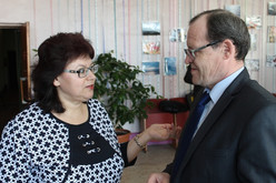 В.А. Булдаков, Глава Сумкинского сельсовета Половинского района, вместе с директором школы С.В. Сафроновой встретил гостей на крыльце учебного заведения. Тепло поприветствовав, пригласил участников зонального семинара – глав поселений из 7 районов области: Белозерского, Варгашинского, Звериноголовского, Кетовского, Куртамышского, Половинского, Притобольного в актовый зал.