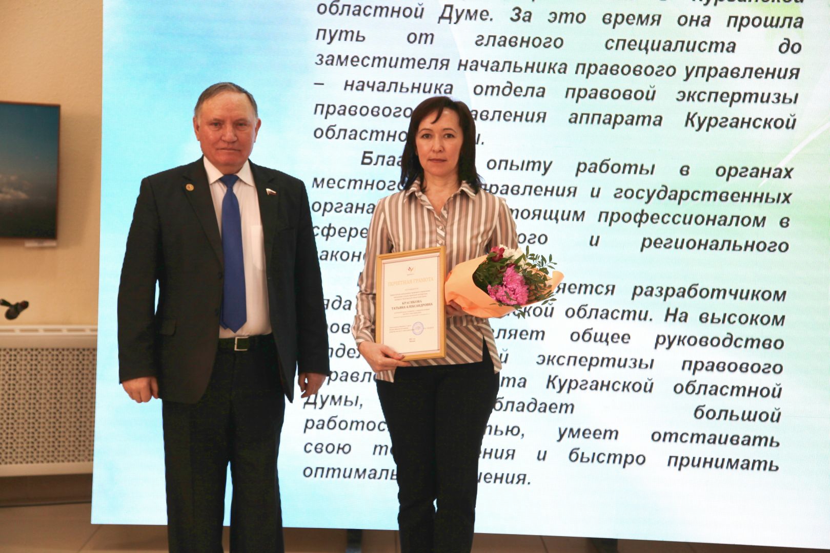 Затем слово для приветствия и поздравления было предоставлено первому заместителю Председателя Курганской областной Думы Владимиру Николаевичу Сажину. Сердечно поздравив всех присутствующих с праздником Владимир Николаевич вручил Благодарственные письма Курганской областной Думы.