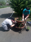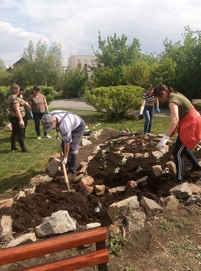 Сотрудники высадили цветы, покрасили урны и ограждения.