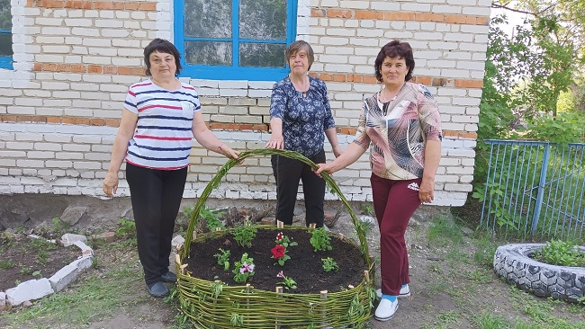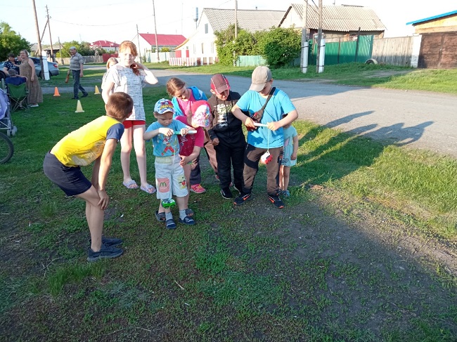 Прошли конкурсы: загадки, прыжки, перемотай ленту, кто быстрее надует воздушный шар, попади в цель, пилотка из газеты и последнее задание посади цветы в клумбу.