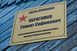 Заместитель Главы Сафакулевского района Петр Спирин принял участие в установке памятного знака на доме участника Великой Отечественной войны, кавалера пяти боевых орденов Гинията Сафиновича Ибрагимова.
