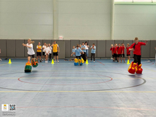 Веселые и запоминающиеся испытания приготовила принимающая сторона: участники бегали в мешках и передвигались в гигантских кедах, «переплывали» спортзал на лодках и перетягивали канат-сосиску – всего пять увлекательных эстафет на сплочение, ловкость и смекалку.