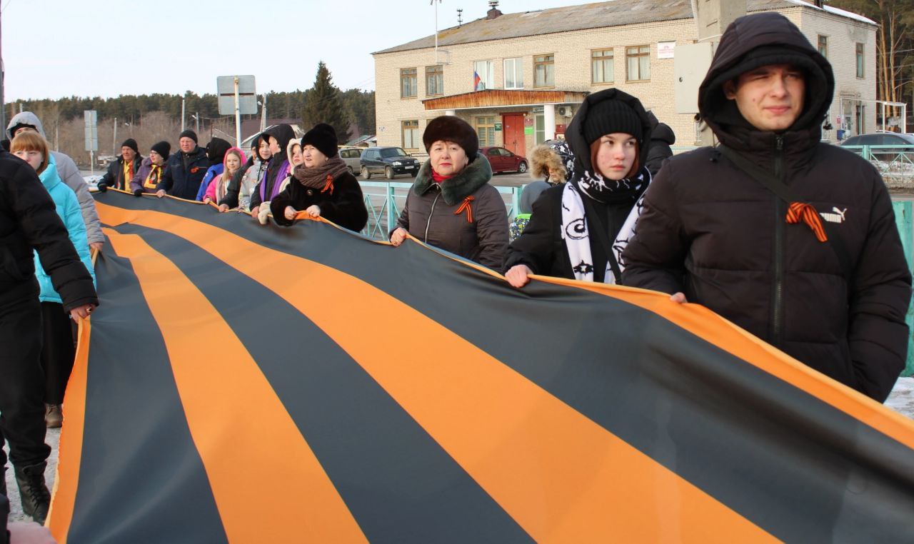Эстафету и Георгиевскую ленту длиной 80 метров округ принял от города Шадринска.