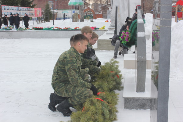 Закончилось мероприятие возложением еловой гирлянды к памятному знаку воинов-афганцев студентами Шатровского филиала КТК.