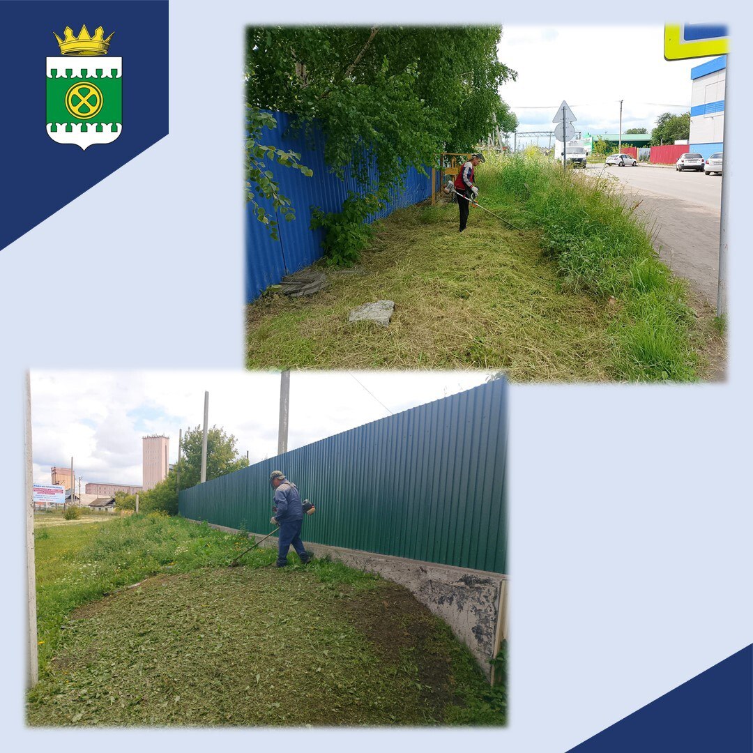 На улицах города Щучье продолжаются работы по скосу сорной растительности.