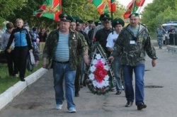 Присутствующие на празднике с особой гордостью приняли официальные поздравления Председателя Общественного Совета ветеранов и майора запаса пограничных войск В.Н. Евдокимова и увидели Праздничный развод – построение офицеров пограничных войск.