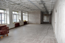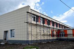 Строительная бригада продолжает облицовку фасада металлическими панелями, замену системы отопления, установку новых дверных блоков. В отдельных помещениях начата покраска стен, обустройство потолочного покрытия.