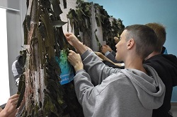 Ребята научились правильно располагать и завязывать ленты на маскировочной сети, затем изготовили блиндажные свечи на мастер-классе «Тепло для бойца».