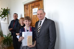 Затем Глава района оценил положение дел в верхнесуерской школе и вручил именную стипендию Чияновой Яне за успехи в спорте, а ребята, в свою очередь, подготовили праздничный номер для стипендиатки.
