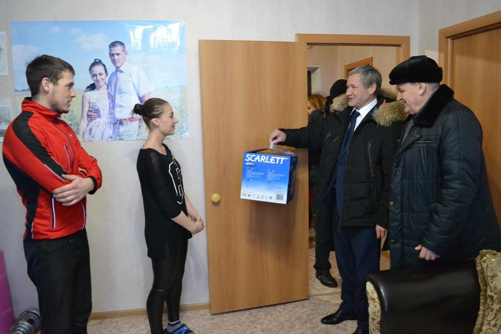 Новый дом для детей-сирот был сдан в ноябре этого года. Люди проживают в хороших условиях: в доме современная отделка, в квартирах – косметический ремонт, территория благоустроена. Алексей Кокорин и Валерий Яковлев встретились с новоселами – молодой семьей Марии Галкиной, которая в прошлом году заняла второе место на чемпионате Европы по настольному теннису. Алексей Кокорин пообщался с новоселами и вручил им подарок. Мария Галкина рассказала главе Зауралья о том, что в новой квартире ее семье живется комфортно.