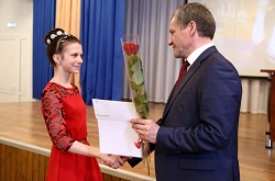 Торжественный прием для одаренных детей и талантливой молодежи, на котором Губернатор Курганской области Алексей Кокорин вручил заслуженную награду Терентьевой Валерии, прошел 12 апреля в средней школе №7 г. Кургана. Обладателями подобной премии в 5 номинациях стали еще чуть более 30 школьников и студентов со всех уголков Курганской области. Имена лауреатов были определены по итогам работы специальной комиссии, в состав которой вошли представители Департамента образования и науки, Управления культуры, Управления по физической культуре, спорту и туризму. Двадцать детей отмечены за успехи в образовании, по пять – в искусстве и спорте.