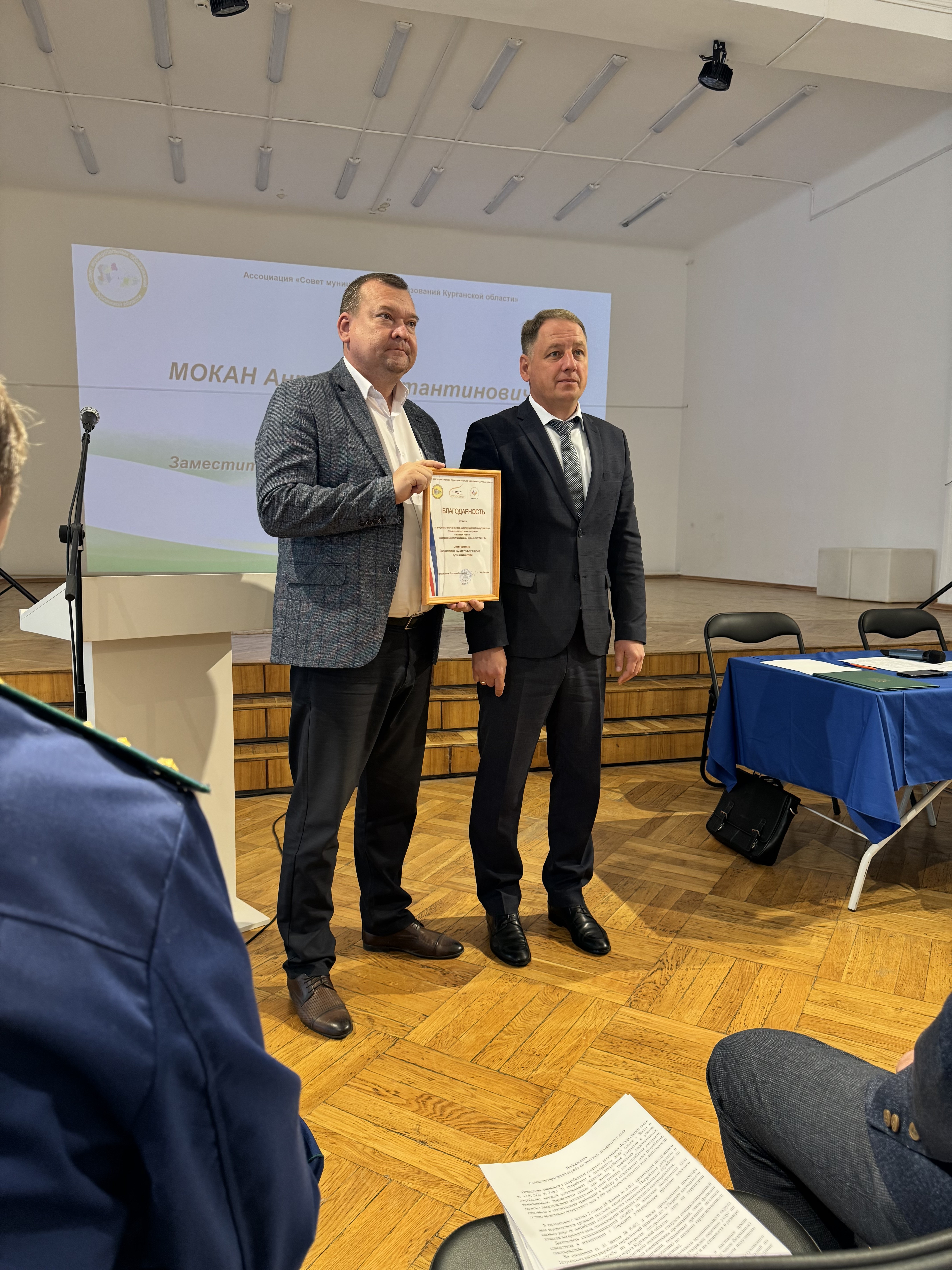 Ведущий заседание Правления заместитель Председателя Правления Ассоциации Антон Мокан вручил Благодарность Правления АСМО Курганской области за активное участие в проекте «Всероссийская муниципальная премия «Служение» администрациям: городов Кургана и Шадринска, Далматовского, Катайского, Кетовского, Шадринского и Шумихинского муниципальных округов.