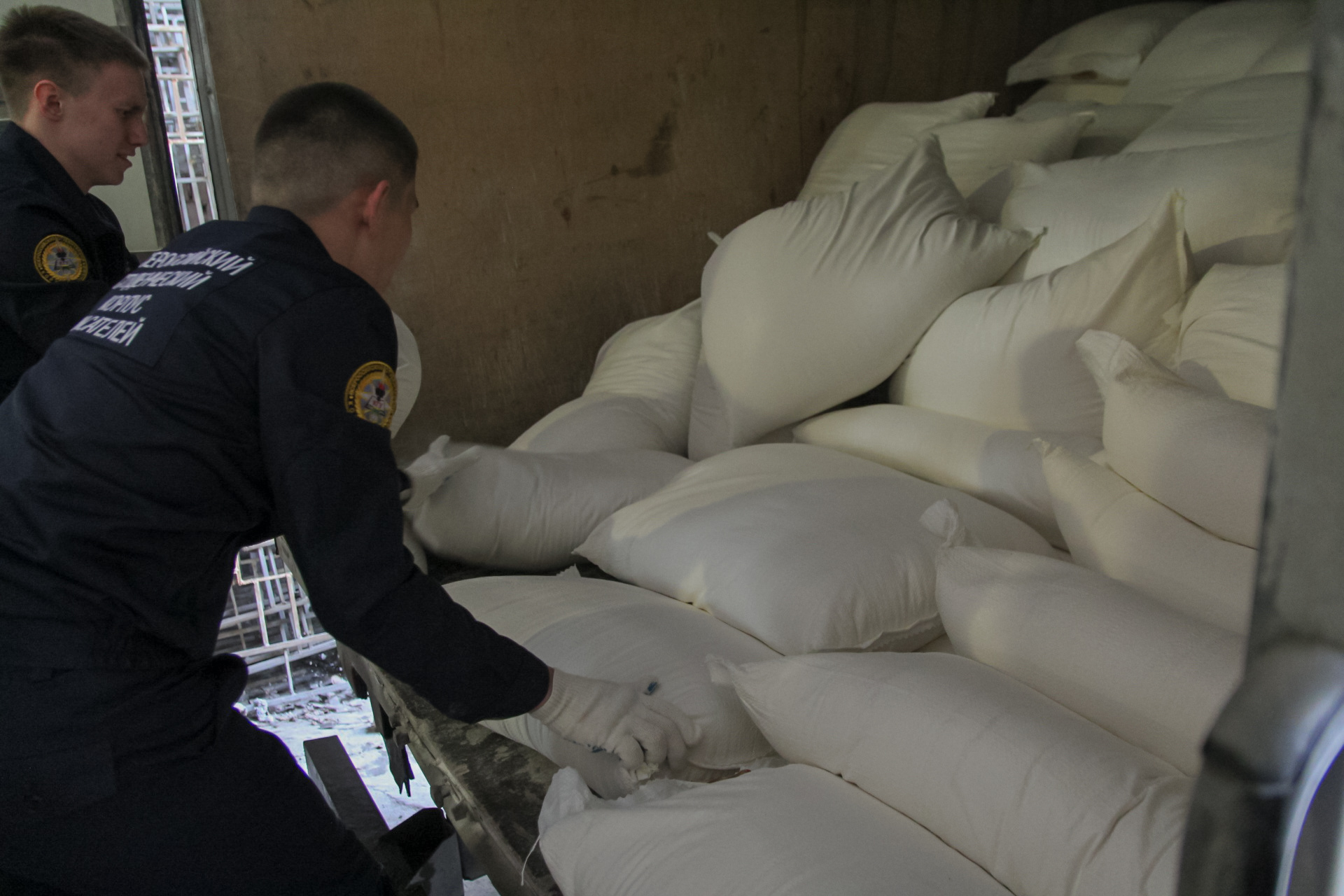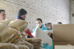23 марта как раз в эту складскую точку на ул. Машиностроителей несколько курганских предпринимателей передали муку, макароны, воду в больших объёмах. Помогли с погрузкой 12 волонтёров из курганских колледжей и техникумов, регионального отделения «Российских студенческих отрядов», организаций «Молодёжка ОНФ» и «Всероссийский студенческий корпус спасателей».