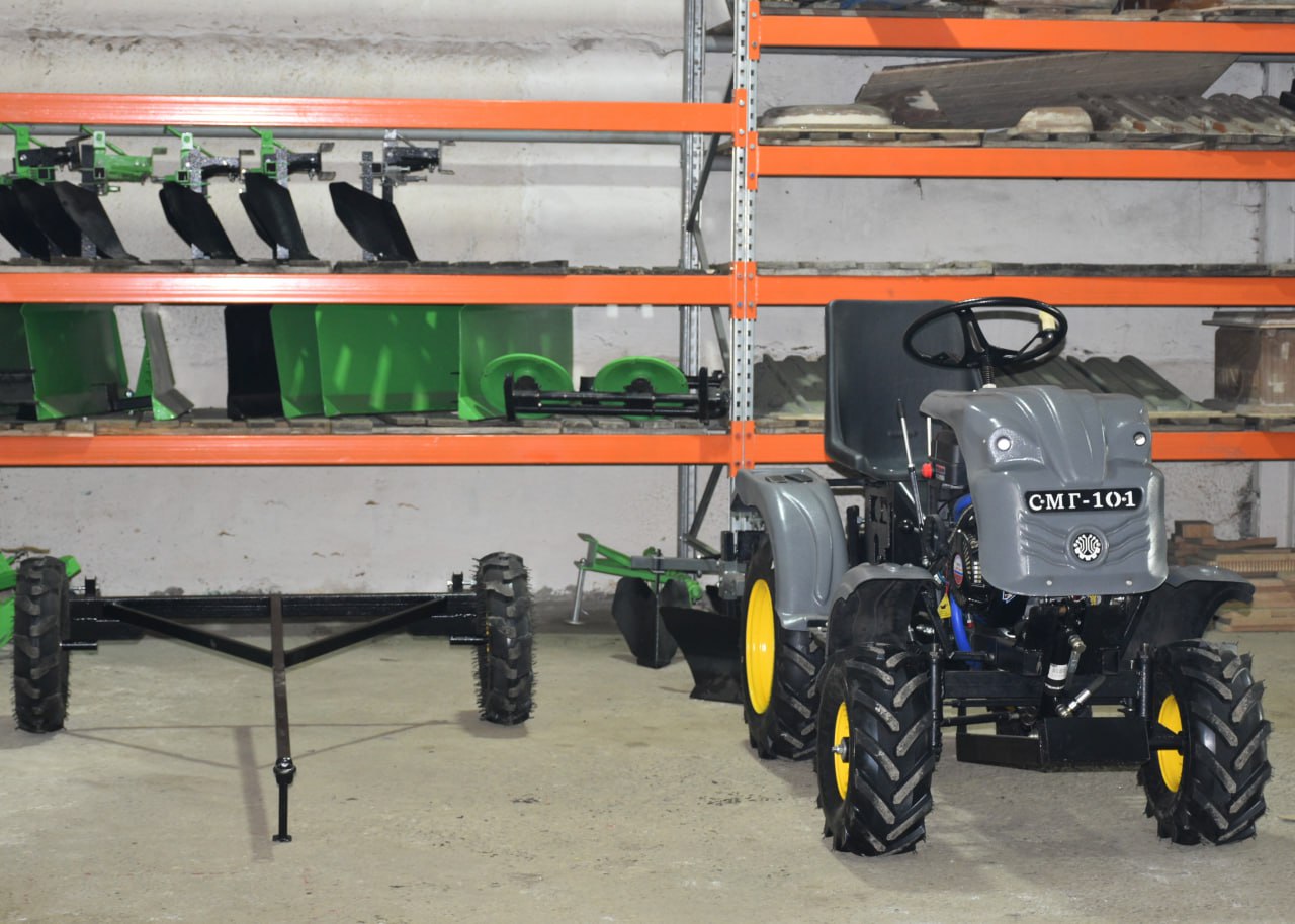 Мини-тракторы серии СМГ-101 и навесное оборудование — то, что производит компания. Мощность мини-трактора — 13 или 15 л. с. Есть разные варианты комплектации — от базовой до расширенной. Эта техника подходит для дачи, личного подсобного и жилищно-коммунального хозяйства.